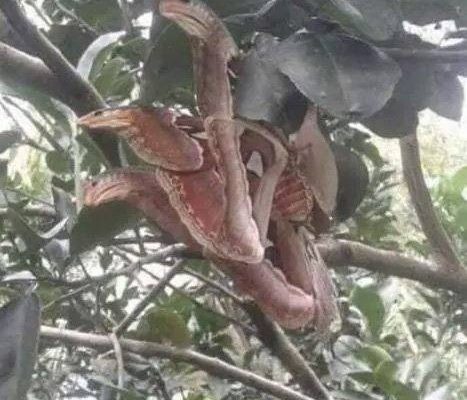 This intricate dance of adaptation and survival took center stage when images of three angry-looking “snakes” began circulating on the internet. In 2021, a photo shared by Rob Allam on Twitter captivated users, seemingly revealing three irate “serpents” concealed in a tree. However, it soon became apparent that there was more to this captivating story than initially met the eye.Attacus atlas, a species of a moth that evolved to have wings that look like snakes to scare off predators. : r/picsThe trio of “snakes” causing a stir is, in fact, a clever optical illusion created by the wings of two distinct species of the Atlas moth. These magnificent insects, native to Asian forests, possess the uncanny ability to mimic the appearance of a snake.