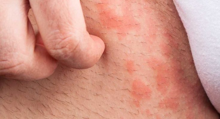 Contact dermatitis occurs when the skin reacts to an allergen or irritant. This reaction can happen due to detergents, soaps, synthetic fabrics, or body lotions.