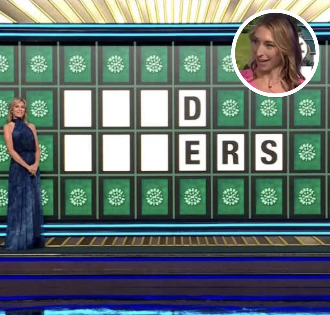 After spinning the wheel and selecting her Golden Envelope, Perri faced what seemed like a deceptively simple two-word puzzle. With the usual “R, S, T, L, N, E” revealed, she picked “M, C, D, and O” as her bonus letters. When the board lit up, it barely offered any help: