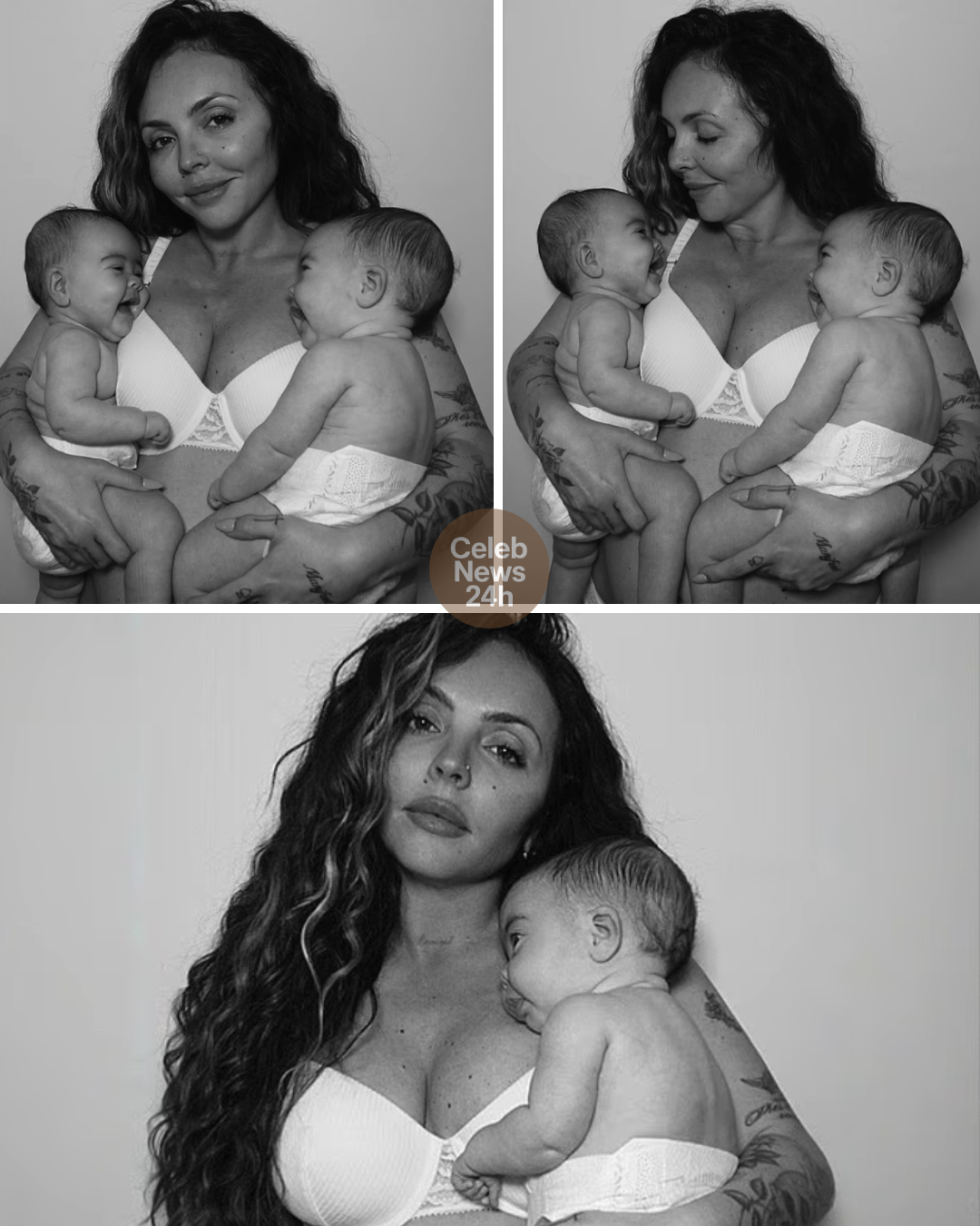 Sharing three stunning black-and-white photos of herself in underwear while holding her babies, Jesy admitted her body “doesn’t look how it used to”, but said she’s never been prouder. “Yes, my boobs hang lower and my belly is squishier — but my god, it created the best gift that has ever happened to me.”
