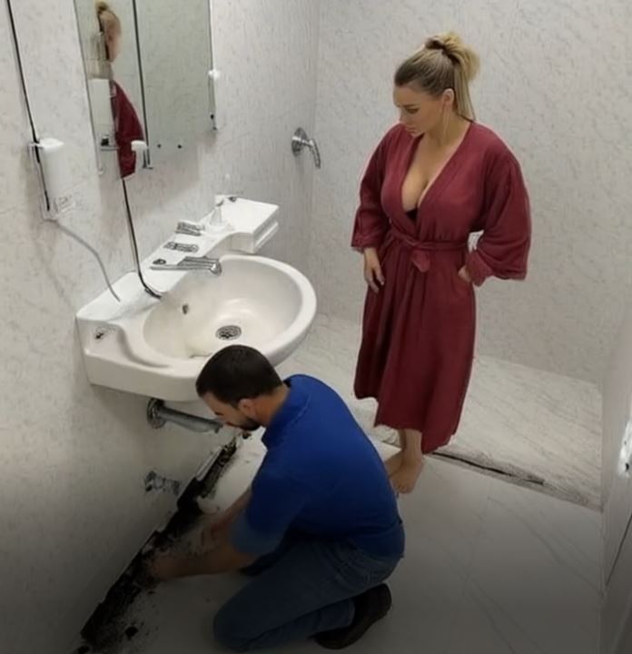 A woman called the hotel receptionist, claiming her bathroom was “broken.” When the maintenance worker arrived, she answered the door wearing only a silk robe.