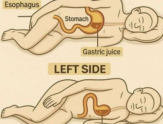 The stomach and esophagus are positioned in such a way that lying on the left side helps keep stomach contents below the opening to the esophagus. This orientation may reduce the likelihood of stomach acid flowing upward, which is what causes the burning sensation many people associate with reflux.