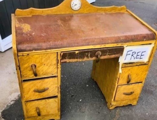 The dressing table had been literally discarded, left on the curb as though it were nothing more than a pile of refuse. Its surface was scratched, chipped, and smeared with layers of yellow paint that obscured whatever beauty it might once have possessed. A hastily scrawled sign reading “Free” hung crookedly from its edge, and yet shoppers passed by without a second glance. To them, it was garbage—an old piece of furniture that had long outlived its purpose, unworthy of attention. Its potential, buried beneath years of neglect and amateur renovation, went unnoticed, like a secret hidden in plain sight. But then, Ross Taylor came along, and in a moment that would change not only the fate of the table but inspire millions online, he stopped, knelt down, and truly looked.