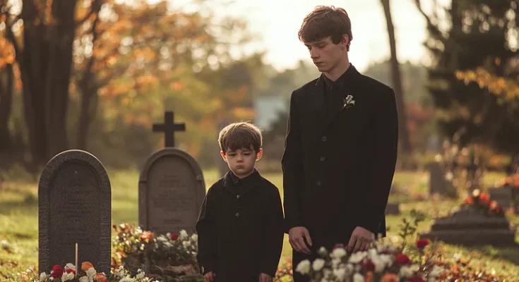 Brothers looking at their parents’ graves | Source: Midjourney