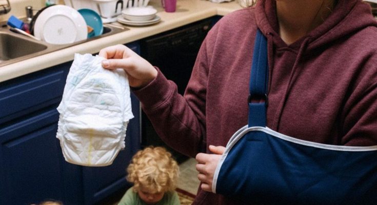 Olivia did all the cooking, cleaning, chasing toddlers, and changing diapers, all with one arm in a sling.