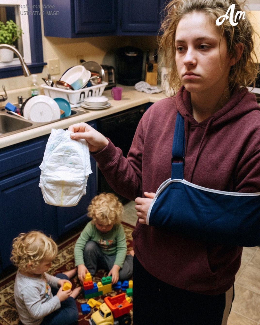 She answered quietly, and what I saw made my blood boil. She was sitting on the floor, pale and exhausted, with both twins climbing on her.