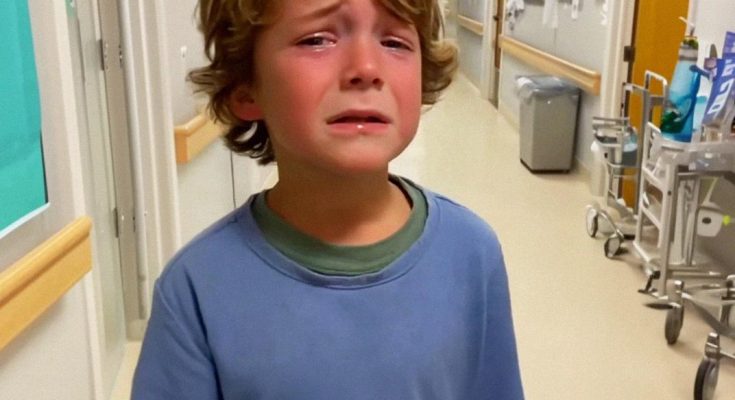 He was a little boy, no more than eight, sitting all alone, curled up on the cold floor near the double doors. The boy was clutching a worn-out backpack so tightly that the straps dug into his small arms. His eyes were red, his cheeks blotchy, and his body shook with each quiet sob.
