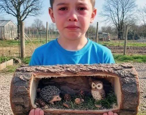 a small hedgehog he had sculpted himself, an owl created from leftover wood, pinecones he collected on walks in the forest, and soft moss he gathered during the last walk he took with his grandfather.