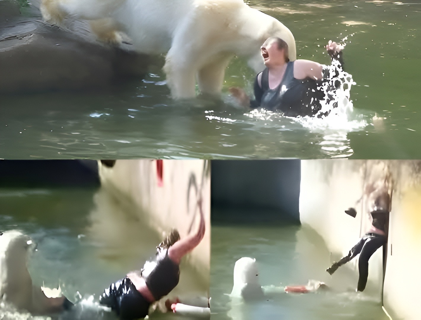 Once inside, Maaddy K jumped over the bars and walked straight into bear territory. The bears, likely perceiving her repeated presence as a threat or emotional stimulus, reacted aggressively. Upon landing, one of the four polar bears attacked her, repeatedly biting her arms, legs, and back.