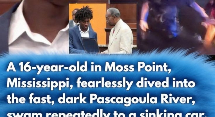 In just minutes, a 16‑year‑old high school student standing nearby — Corion Evans — would show a level of self‑less bravery most adults could scarcely imagine. His quick thinking and fearless actions ultimately saved four lives amid powerful currents and near‑certain peril.The driver later told police she had been following her GPS and did not realize she was heading down the unlit ramp into the Pascagoula River. The lack of clear visual cues in the darkness contributed to the mistake, with the GPS indicating a continuation of road ahead where there was only water.READ MORE BELOW