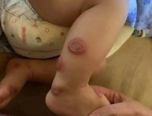 Painful, bright red patches appeared on her face and neck