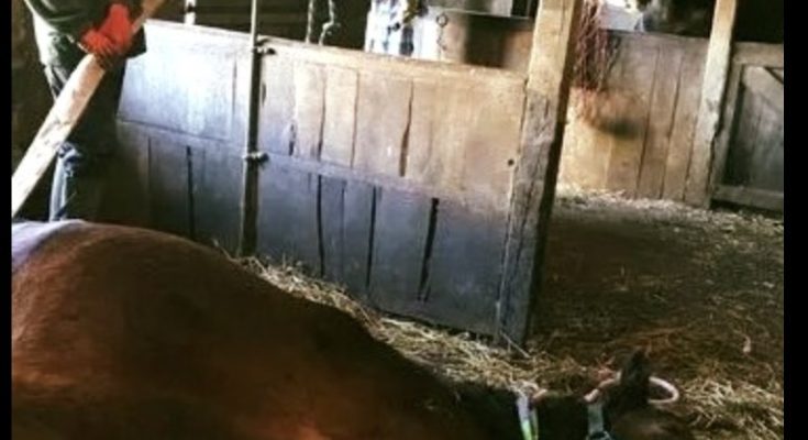 Her owners Donald MacIntyre and Jane Lipington called to four other farm workers for help lifting Beatrice to her feet. They knew they didn’t have much time.