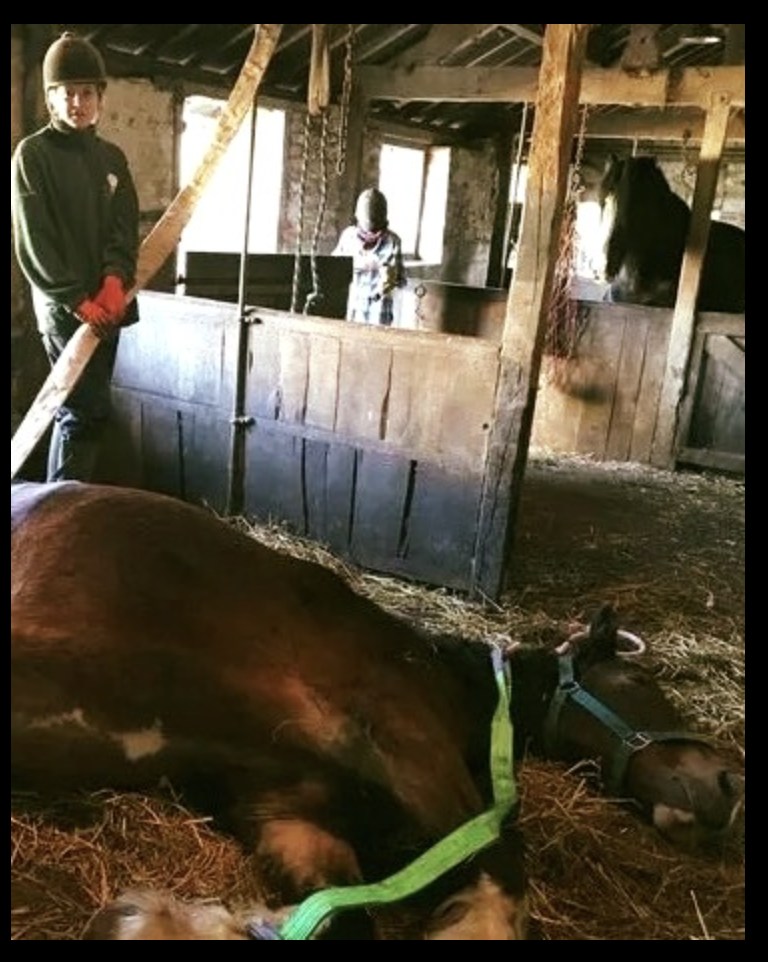 When poor Beatrice couldn’t take the pain any longer, she collapsed in her stable, something which is life-threatening for a horse. Horses cannot be off their feet for long, as it puts them at risk of “reperfusion injury” – meaning their blood flow can’t reach certain areas of their body, leading to internal organ failure.