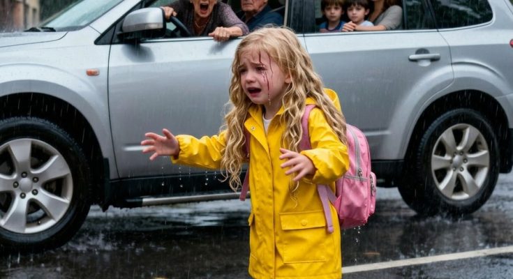 Lily, only six, ran toward the car the moment she saw it. She assumed she’d be taken home like always. Instead, my mother rolled the window down, looked at her without warmth, and told her to walk home in the rain.