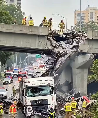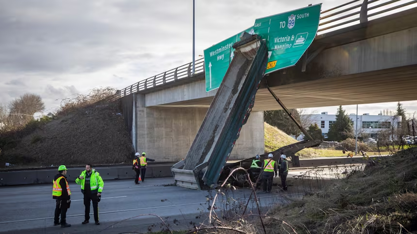 A statement from RCMP said the truck hit the Cambie Road overpass, just south of the Knight Street Bridge, around 7:15 a.m. PT. The road closures will continue while officials confirm whether the overpass is stable.