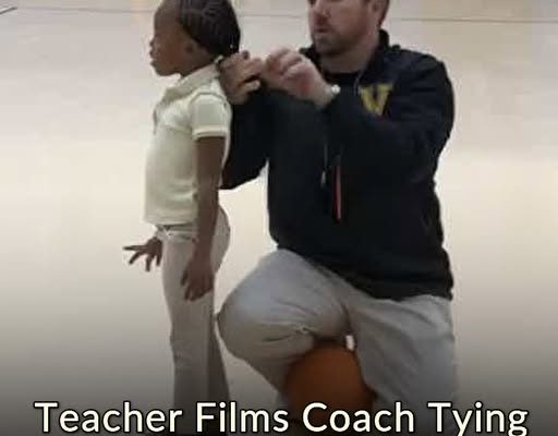 The title read, “When your job goes beyond coaching.” The video’s caption read, “Coach Oliver casually puts this students hair in a ponytail so that she can continue her PE activities.”