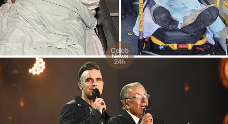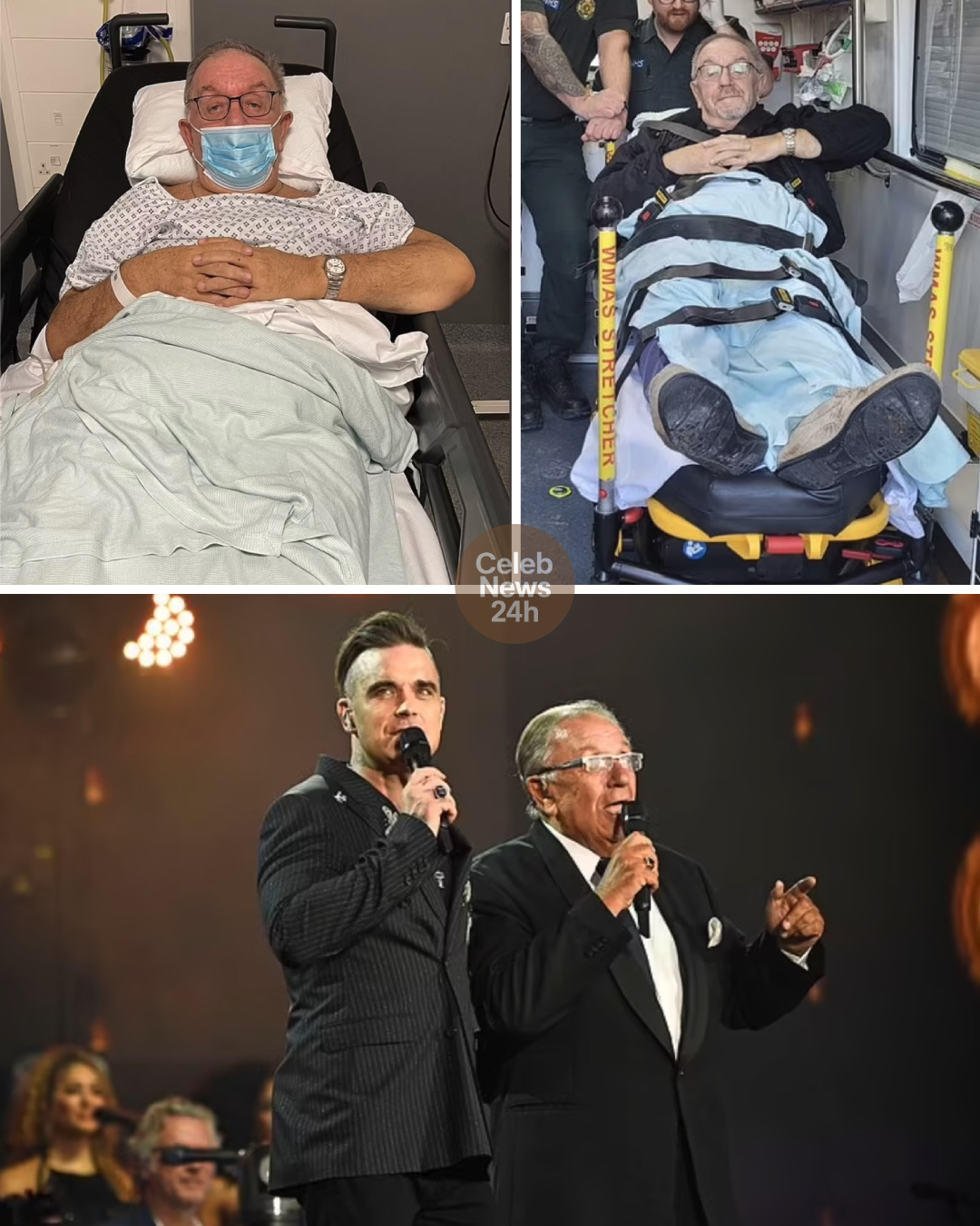 Robbie Williams’ father, Pete Conway, has been rushed to hospital after suffering a painful fall that left him with a broken bone in his spine.