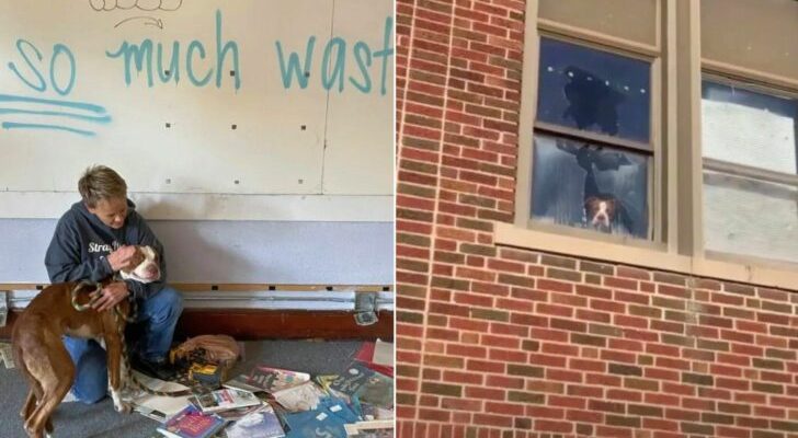 For several days, Ollie remained inside an abandoned school building, separated from the outside world. Positioned near a high, damaged window, he stayed alert, looking out as if hoping someone might notice him.