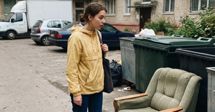 Near the trash bins stood an old chair alongside a few discarded bags. It appeared to be just another piece of unwanted furniture, left behind without much thought. For most people, it would have gone unnoticed.