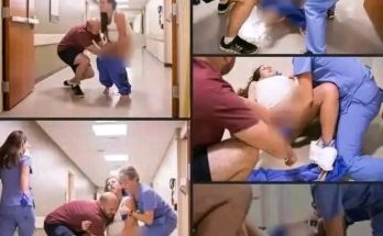Here’s a lady seen being escorted by some serious looking people. She’s also on wheels rather than legs, which is fairly unusual.