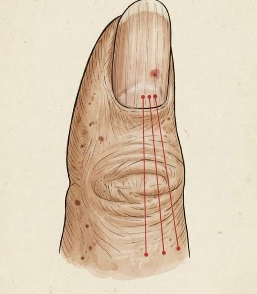 These lines form when the body redirects energy away from nail production during difficult periods. As the nail grows, the line moves outward, marking when the disruption occurred.