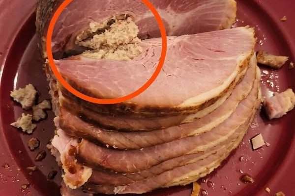 As I continued cutting deeper into the ham, my knife suddenly met resistance. It wasn’t dramatic, but it was enough to catch my attention. The blade didn’t glide as easily as before — instead, it hit something slightly firmer, almost as if there was a denser spot hidden inside.
