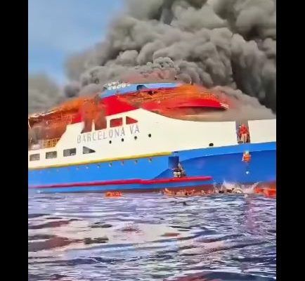 Eyewitness footage shared on social media showed the vessel partially engulfed in flames, with rescue ships spraying water onto the burning hull as terrified passengers huddled together on deck.
