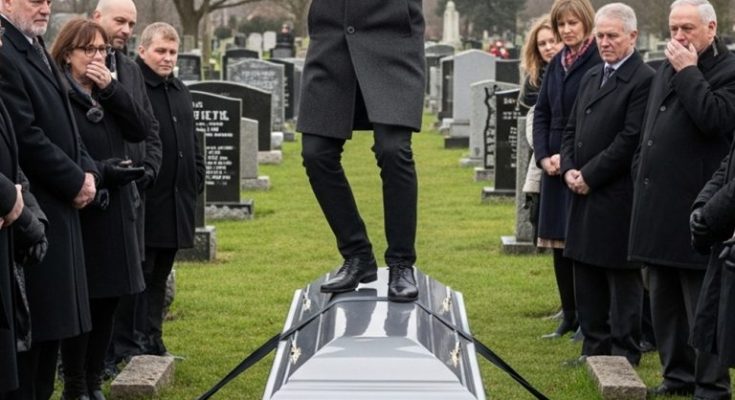 They buried him on a gray Thursday—a forty–year–old gone too soon after a long illness. Family, friends, neighbors, colleagues lined the narrow path between stone markers, hands tucked into coats, faces turned down, grief moving through the crowd like a quiet tide. The coffin rested on straps above the open earth. The pastor cleared his throat. The pallbearers reached for the webbing. And then, from the edge of the circle, a man stepped forward with something small and black in his hand.