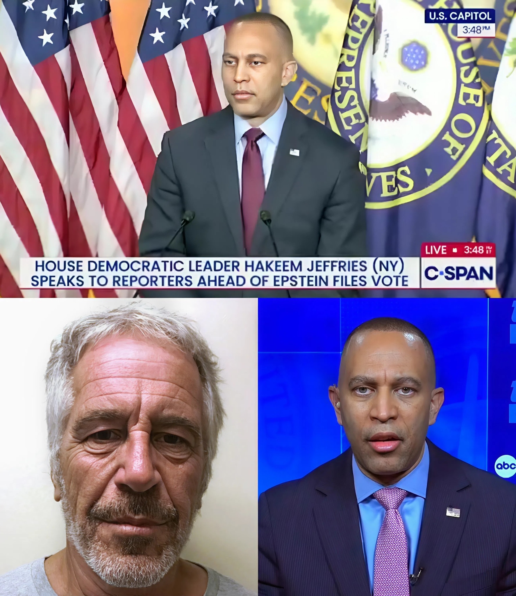 Jeffries appeared momentarily taken aback by the question. Instead of addressing the details directly, he redirected the conversation by emphasizing transparency and accountability in general terms. He described the investigation into the Epstein case as bipartisan and stressed that all involved should face public scrutiny. He then attempted to move to the next question without returning to the specifics of the reporter’s concern.